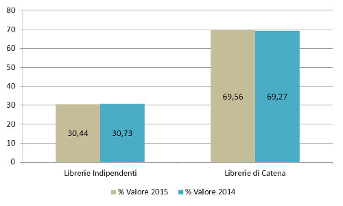 Il 2015 si è concluso con un dato ancora negativo, ma l'entità ridotta della perdita rispetto all'anno scorso (-1,45% a valore, -2,34% a copie), che già aveva segnato perdite nettamente inferiori agli anni precedenti, può essere letta come il segnale di una tendenza verso la stabilizzazione.